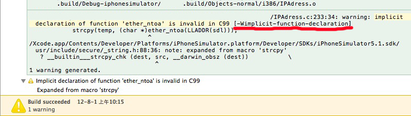 -Wimplicit-function-declaration尚未声明的函数(通常指c函数) -